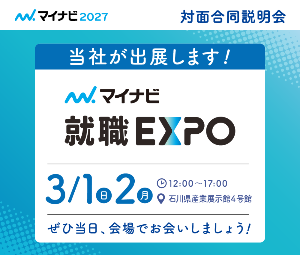 マイナビ主催の「就職EXPO 北陸会場」へ出展します!